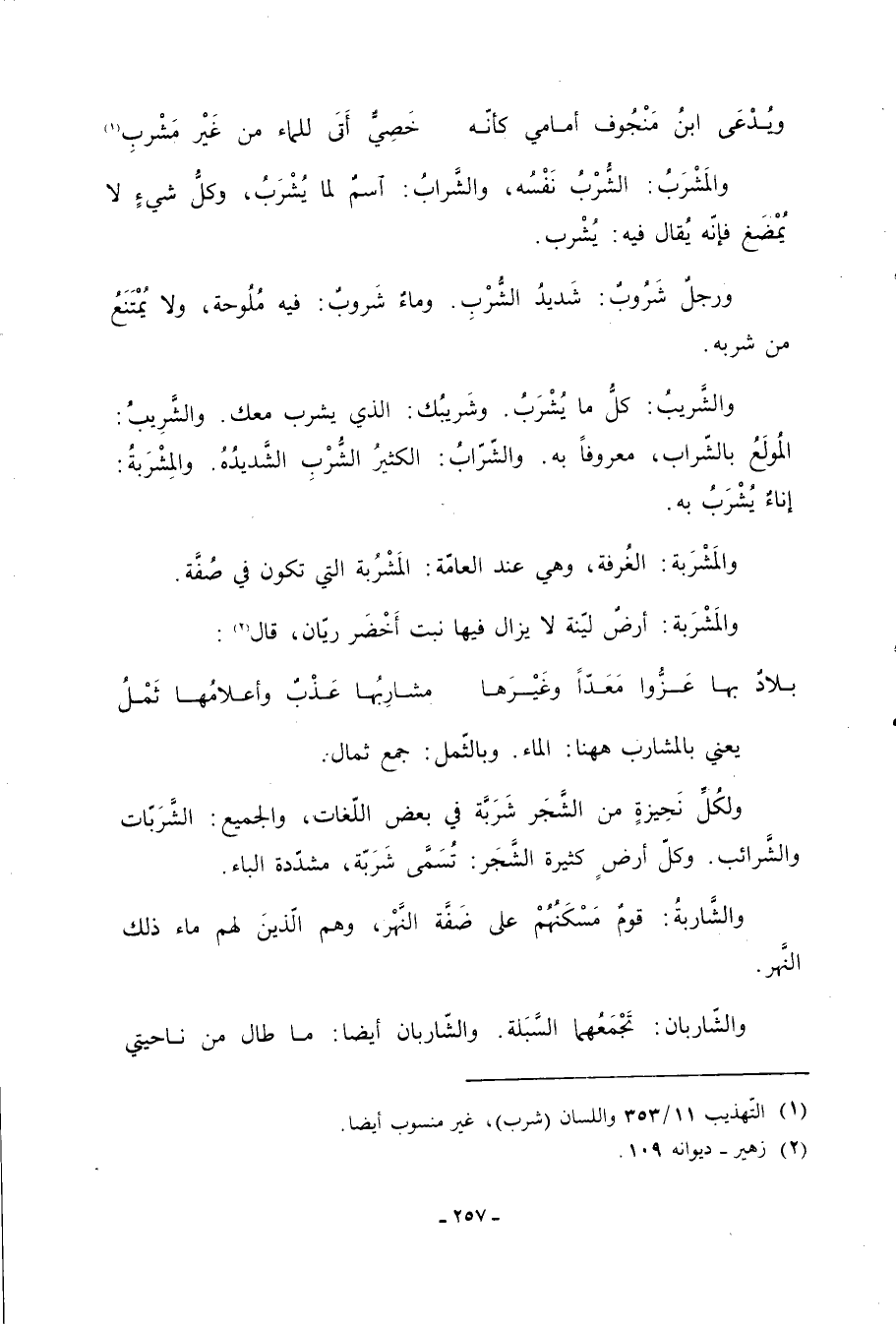 (1) التهذيب 11/ 353 واللسان (شرب) ، غير منسوب أيضا.