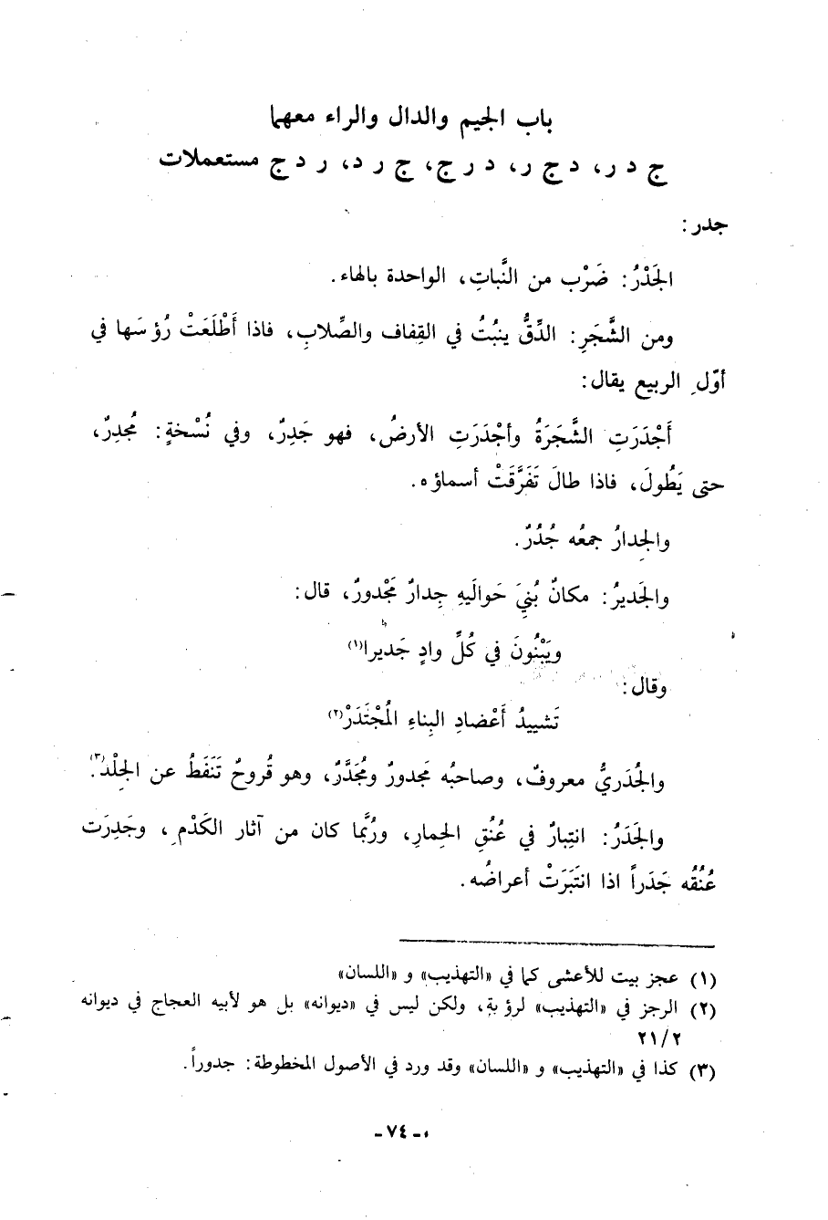 (3) كذا في التهذيب واللسان وقد ورد في الأصول المخطوطة: جدورا.