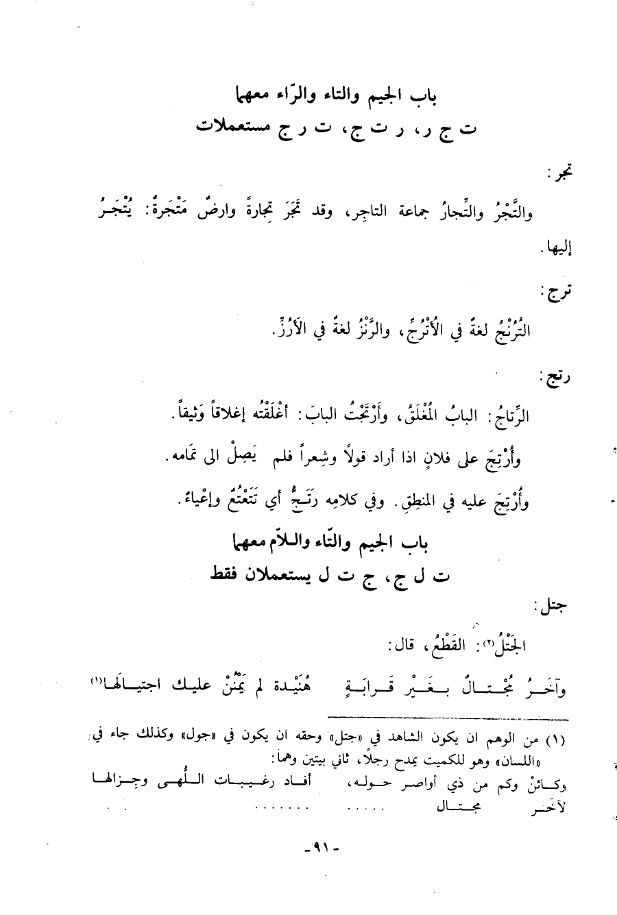 باب الجيم والتاء واللام معهما ت ل ج، ج ت ل يستعملان فقط