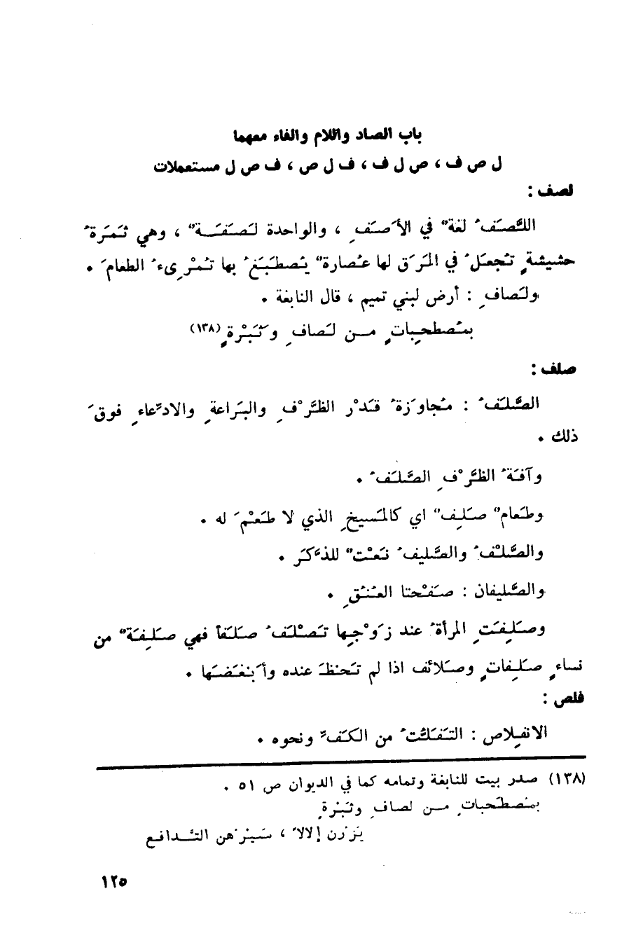 باب الصاد واللام والفاء معهما ل ص ف، ص ل ف، ف ل ص، ف ص ل مستعملات