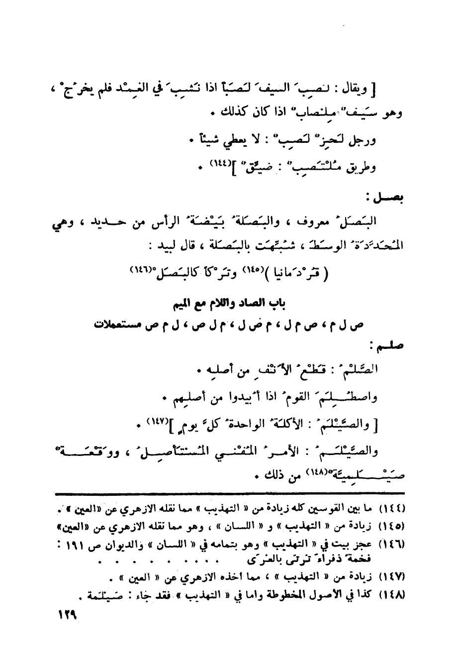 (144) ما بين القوسين كله زيادة من التهذيب مما نقله الأزهري عن العين.