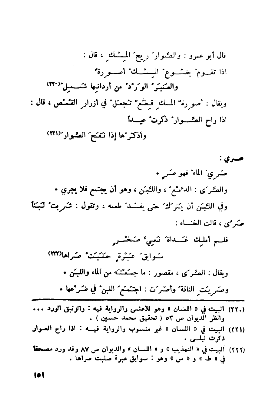 (221) البيت في اللسان غير منسوب والرواية فيه: