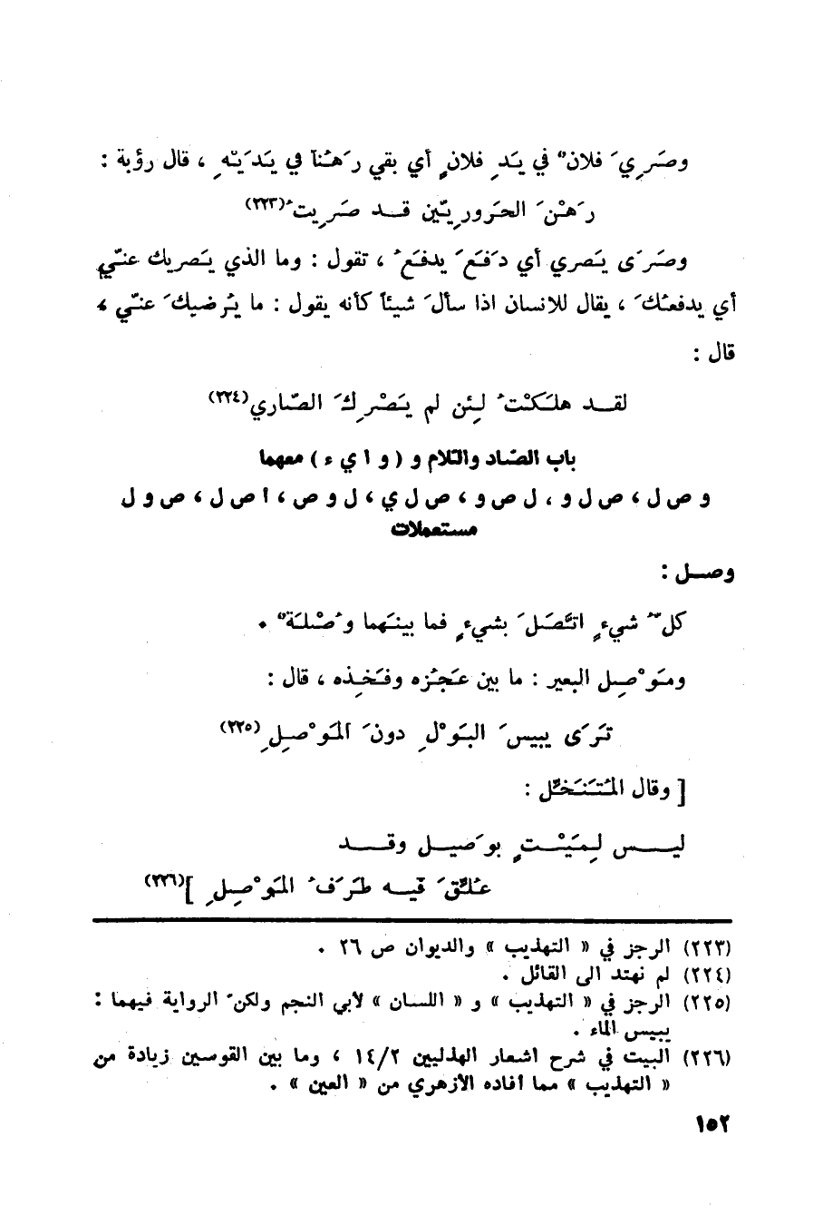 باب الصاد واللام و (وأ يء) معهما وص ل، ص ل و، ل ص و، ص ل ي، ل وص، أص ل، ص ول مستعملات