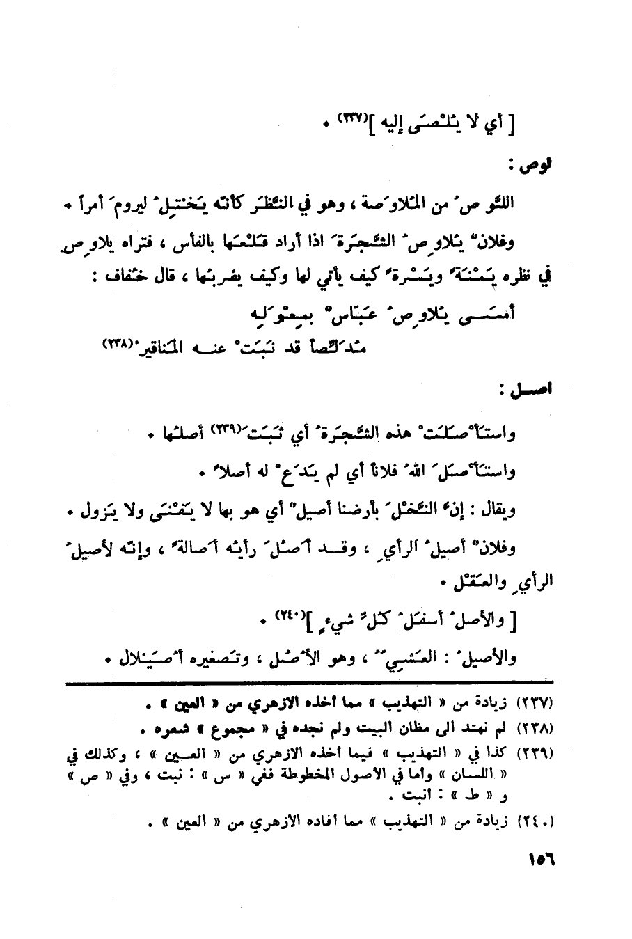 (240) زيادة من التهذيب مما أفاده الأزهري من العين.
