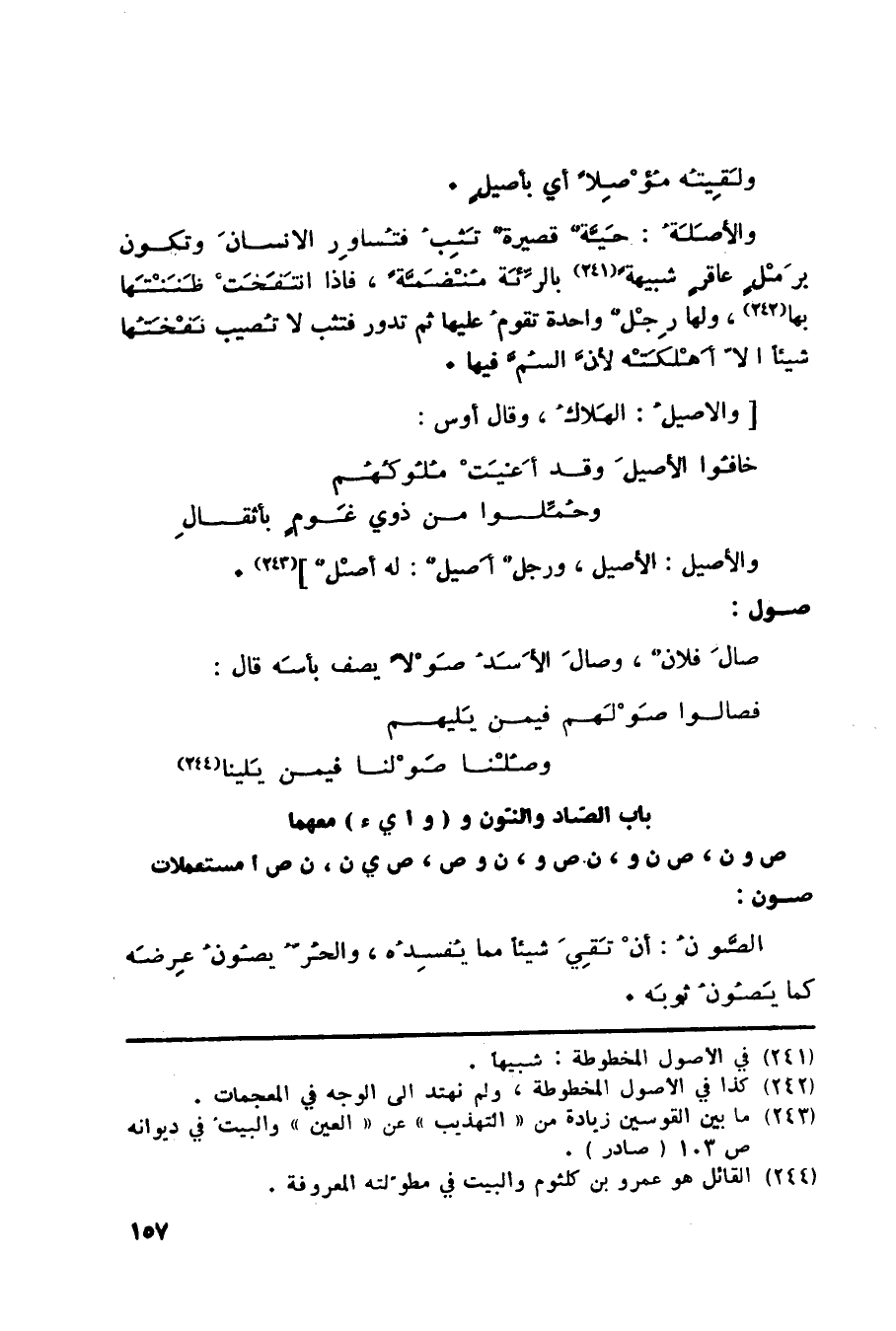 باب الصاد والنون و (وأ يء) معهما ص ون، ص ن و، ن ص و، ن وص، ص ي ن، ن ص أمستعملات