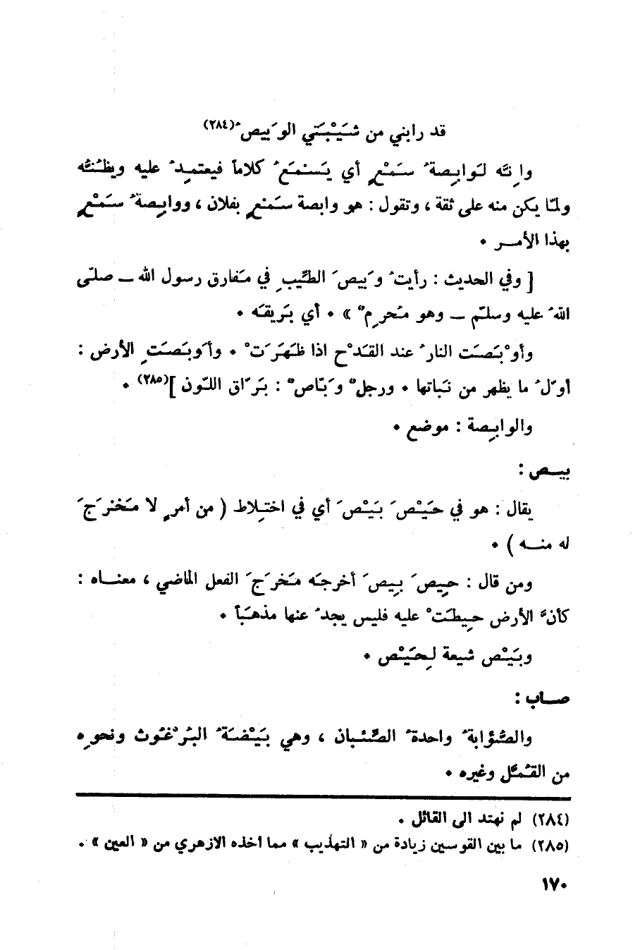 (285) ما بين القوسين زيادة من التهذيب مما أخذه الأزهري من العين.