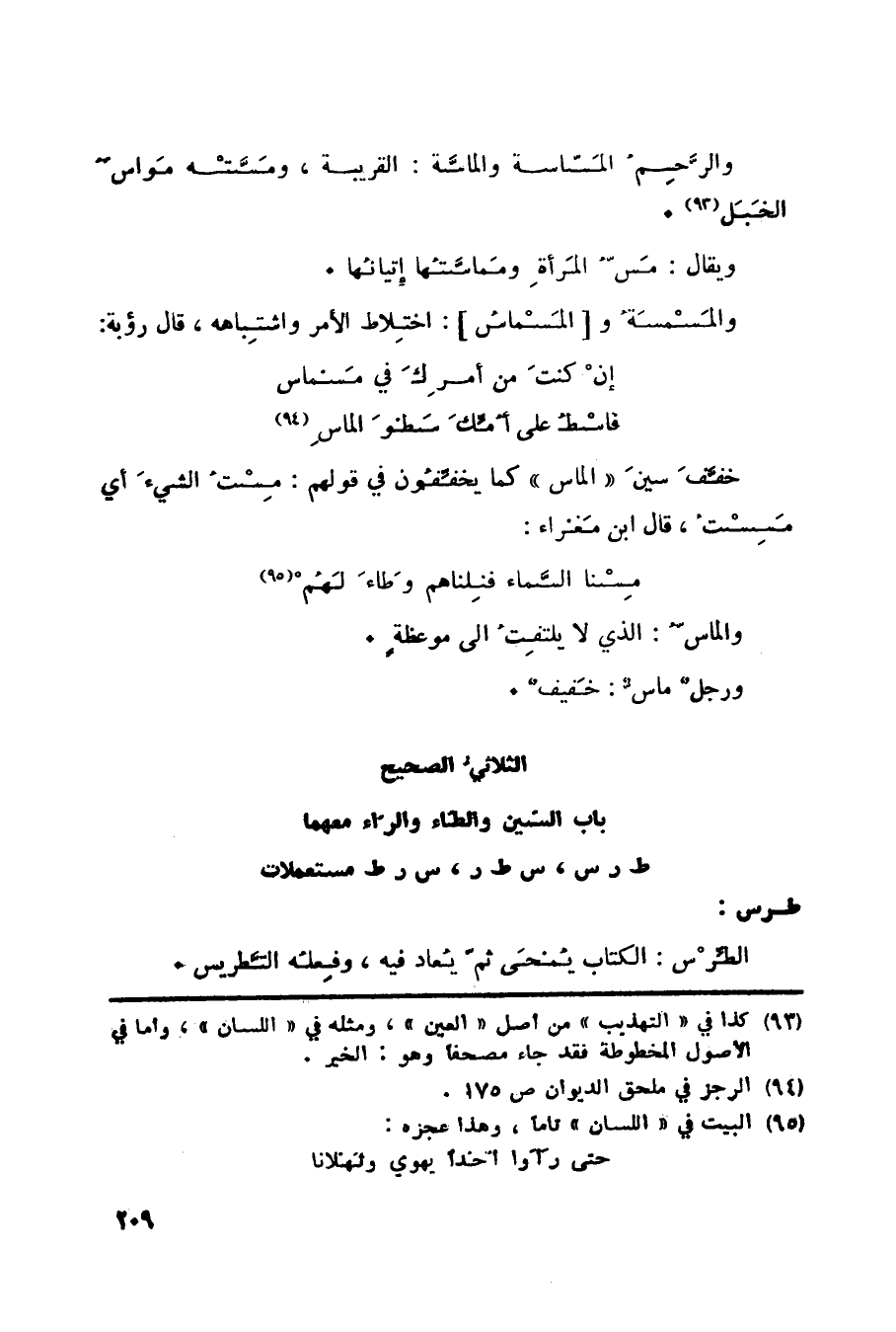 باب السين والطاء والراء معهما ط ر س، س ط ر، س ر ط مستعملات