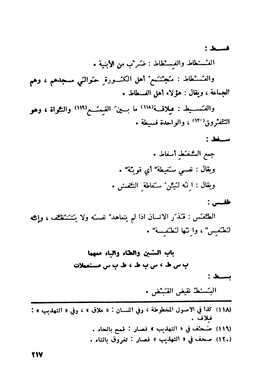 باب السين والطاء والباء معهما ب س ط، س ب ط، ط ب س مستعملات