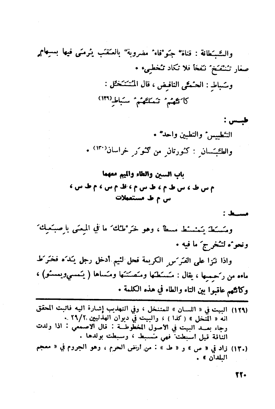 باب السين والطاء والميم معهما م س ط، س ط م، ط س م، ط م س، م ط س، س م ط مستعملات