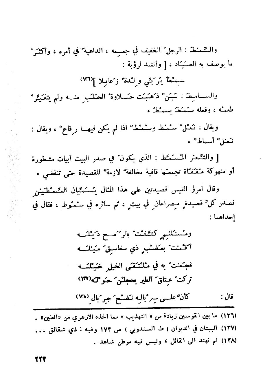 (136) ما بين القوسين زيادة من التهذيب مما أخذه الأزهري من العين.