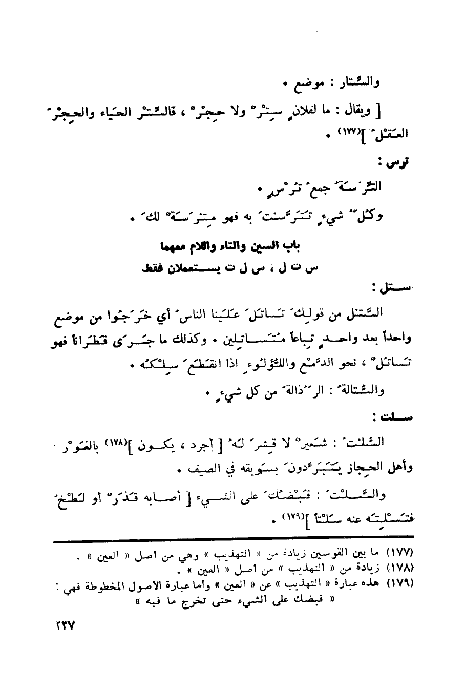 باب السين والتاء واللام معهما س ت ل، س ل ت يستعملان فقط