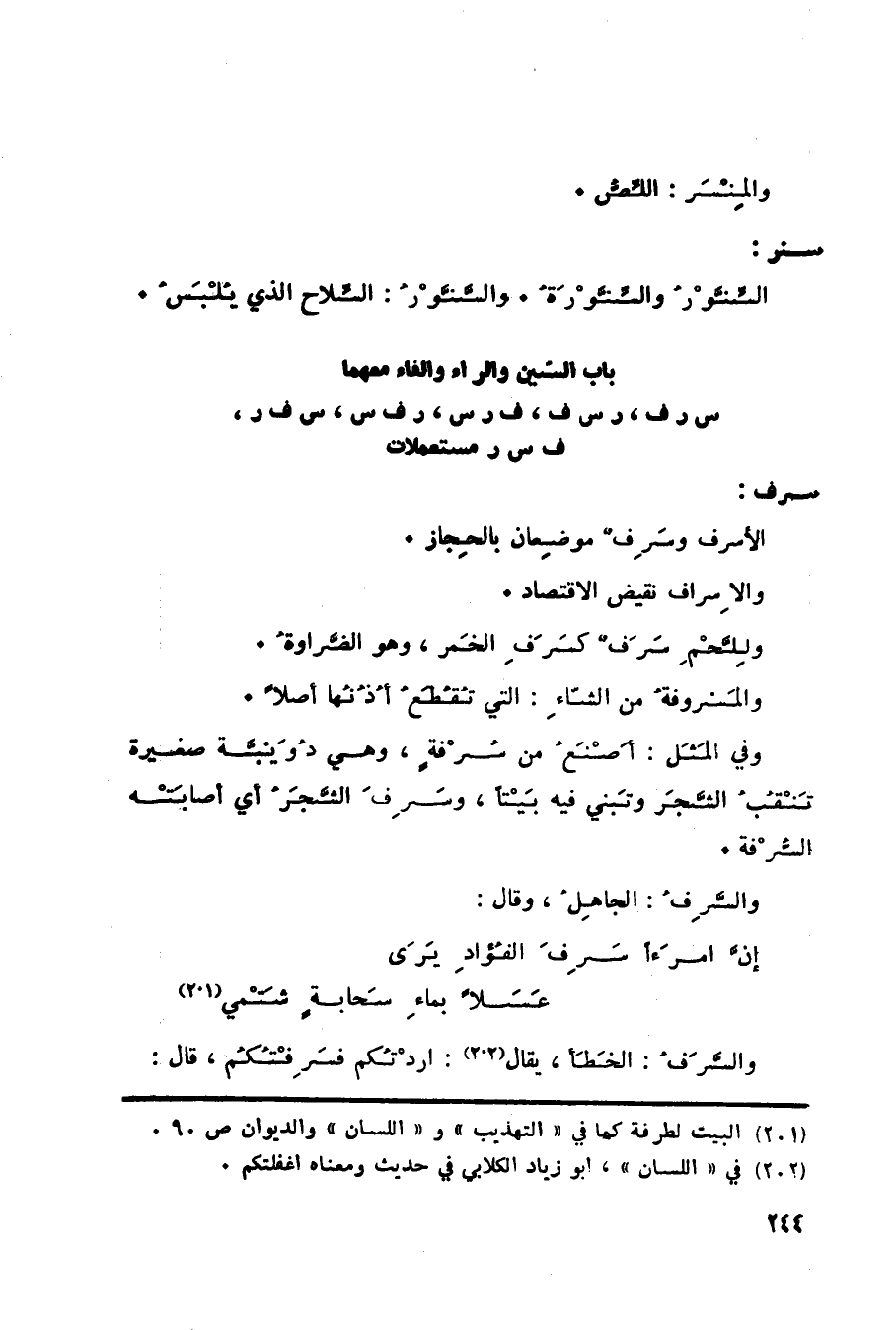 باب السين والراء والفاء معهما س ر ف، ر س ف، ف ر س، ر ف س، س ف ر، ف س ر مستعملات