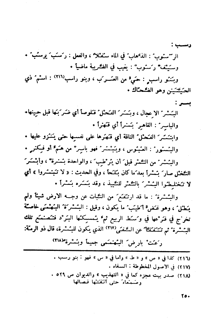 (218) صدر بيت عجزه كما في التهذيب والديوان ص 529.