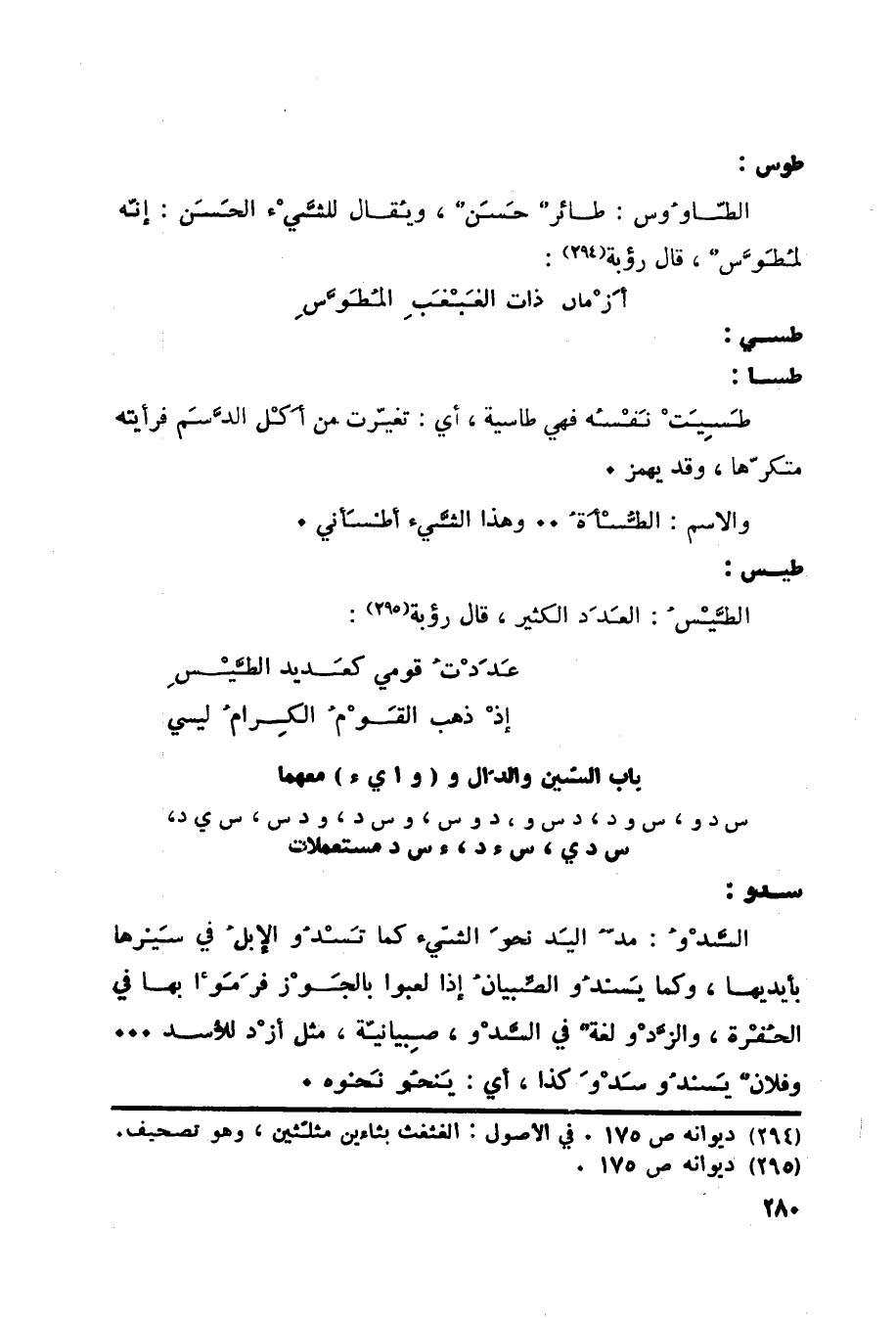 طيس: الطَّيْسُ: العَدَد الكثير، قال رؤبة: «295»