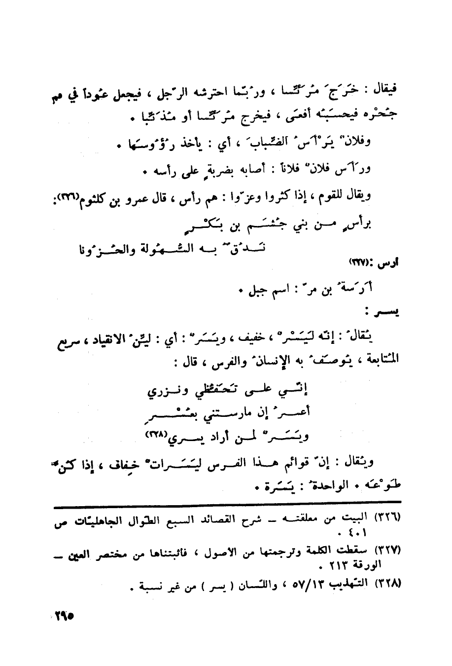 (326) البيت من معلقته شرح القصائد السبع الطوال الجاهليات ص 401.