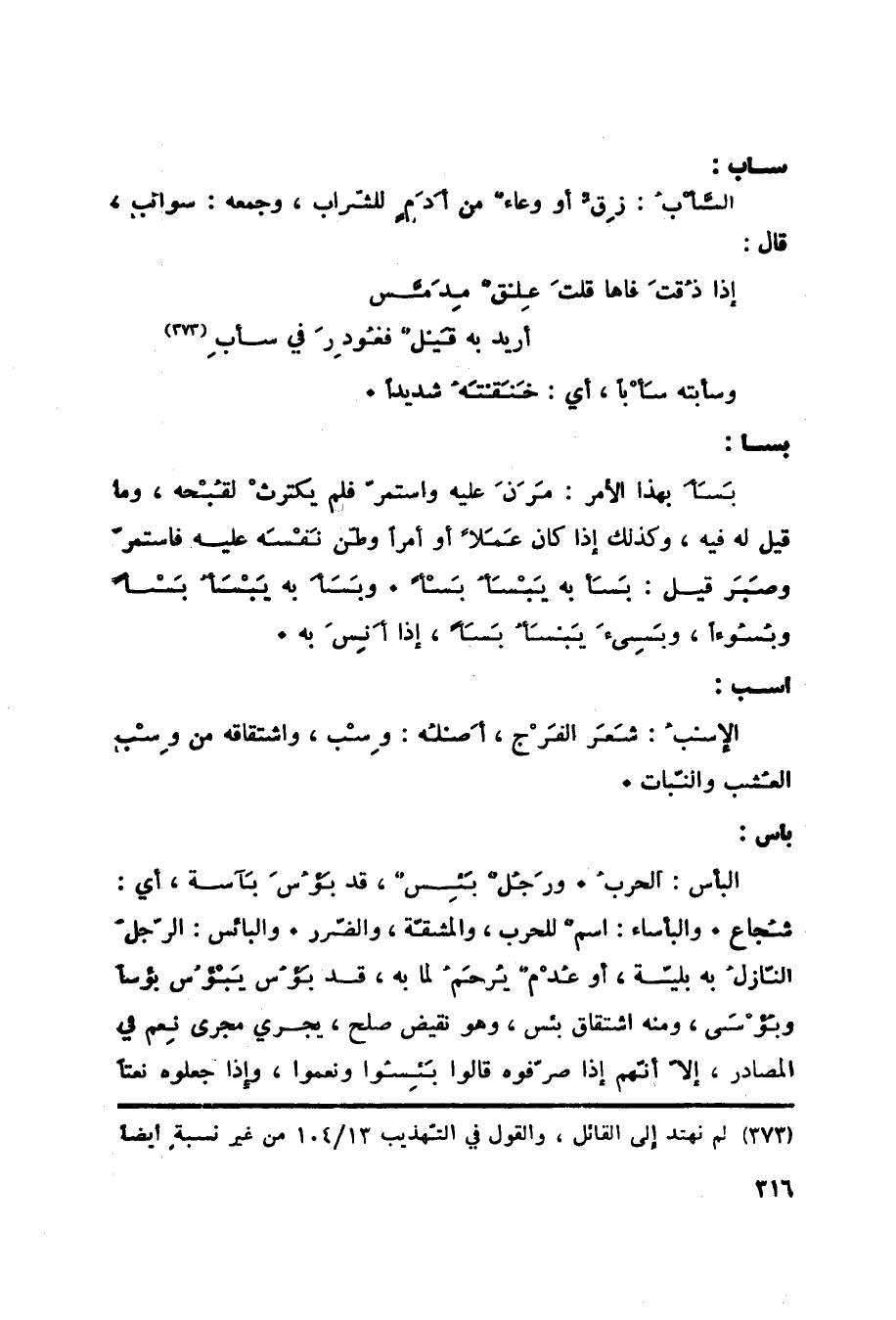 (373) لم نهتد إلى القائل، والقول في التهذيب 13/ 104 من غير نسبة أيضا.