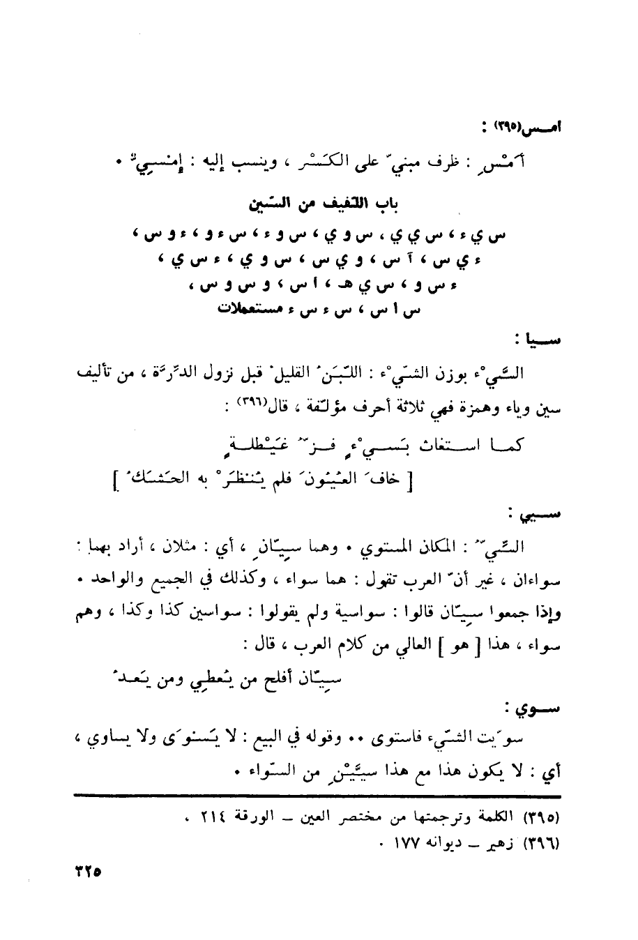 باب اللفيف من السين س يء، س ي ي، س وي، س وء، سء و، ء وس، ء ي س، آس، وي س، س وي، ء س ي، ء س و، س ي هـ، أس، وس وس، س اس، سء سء مستعملات