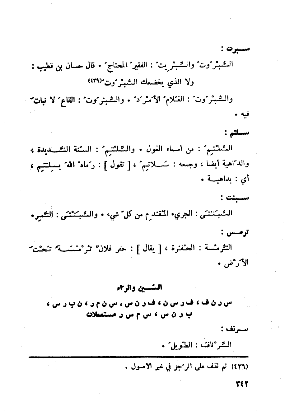 السين والراء س ر ن ف، ف ر س ن، ف ر ن س، س ن م ر، ن ب ر س، ب ر ن س، س م س ر مستعملات