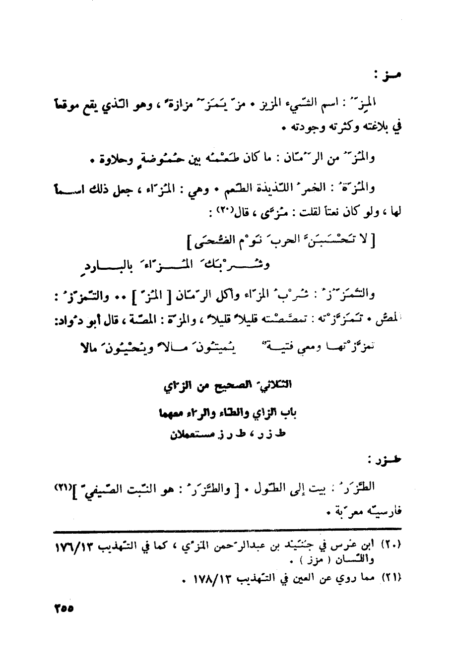 باب الزاي والطاء والراء معهما ط ز ر، ط ر ز مستعملان