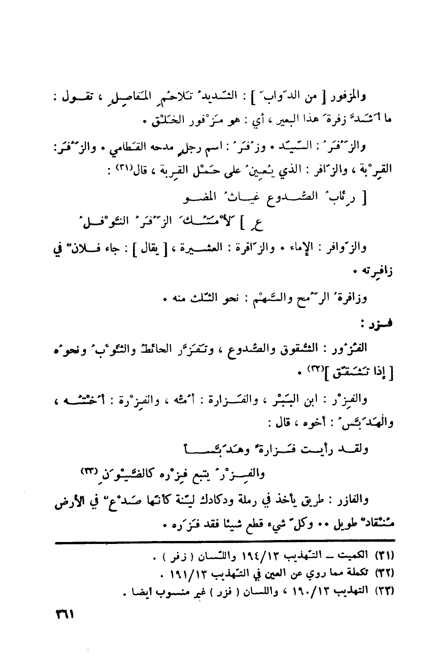 (33) التهذيب 13/ 190، واللسان (فزر) غير منسوب أيضا.