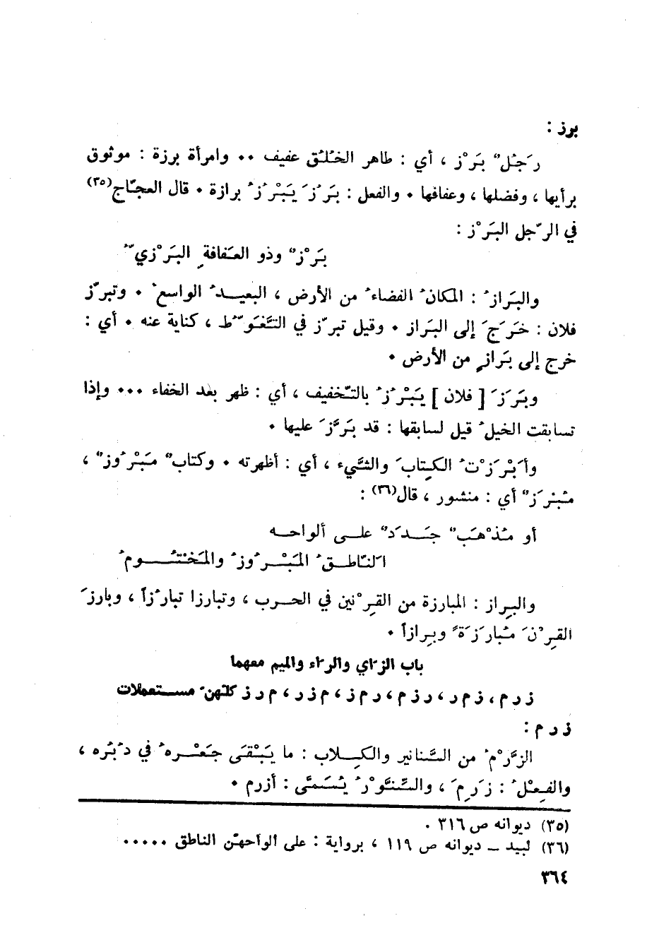 باب الزاي والراء والميم معهما ز ر م، ز م ر، ر ز م، ر م ز، م ز ر، م ر ز كلهن مستعملات