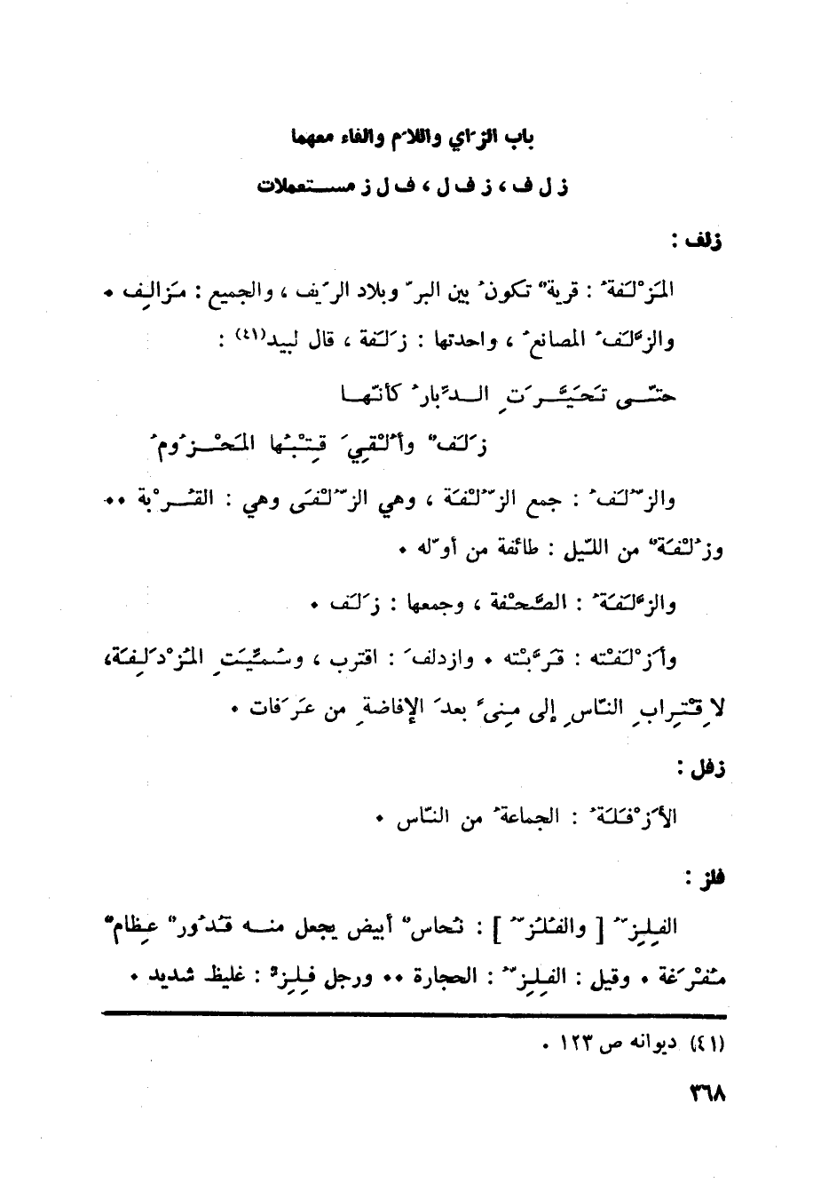 باب الزاي واللام والفاء معهما ز ل ف، ز ف ل، ف ل ز مستعملات