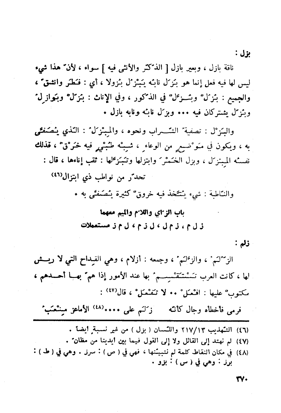 باب الزاي واللام والميم معهما ز ل م، ز م ل، ل ز م، ل م ز مستعملات