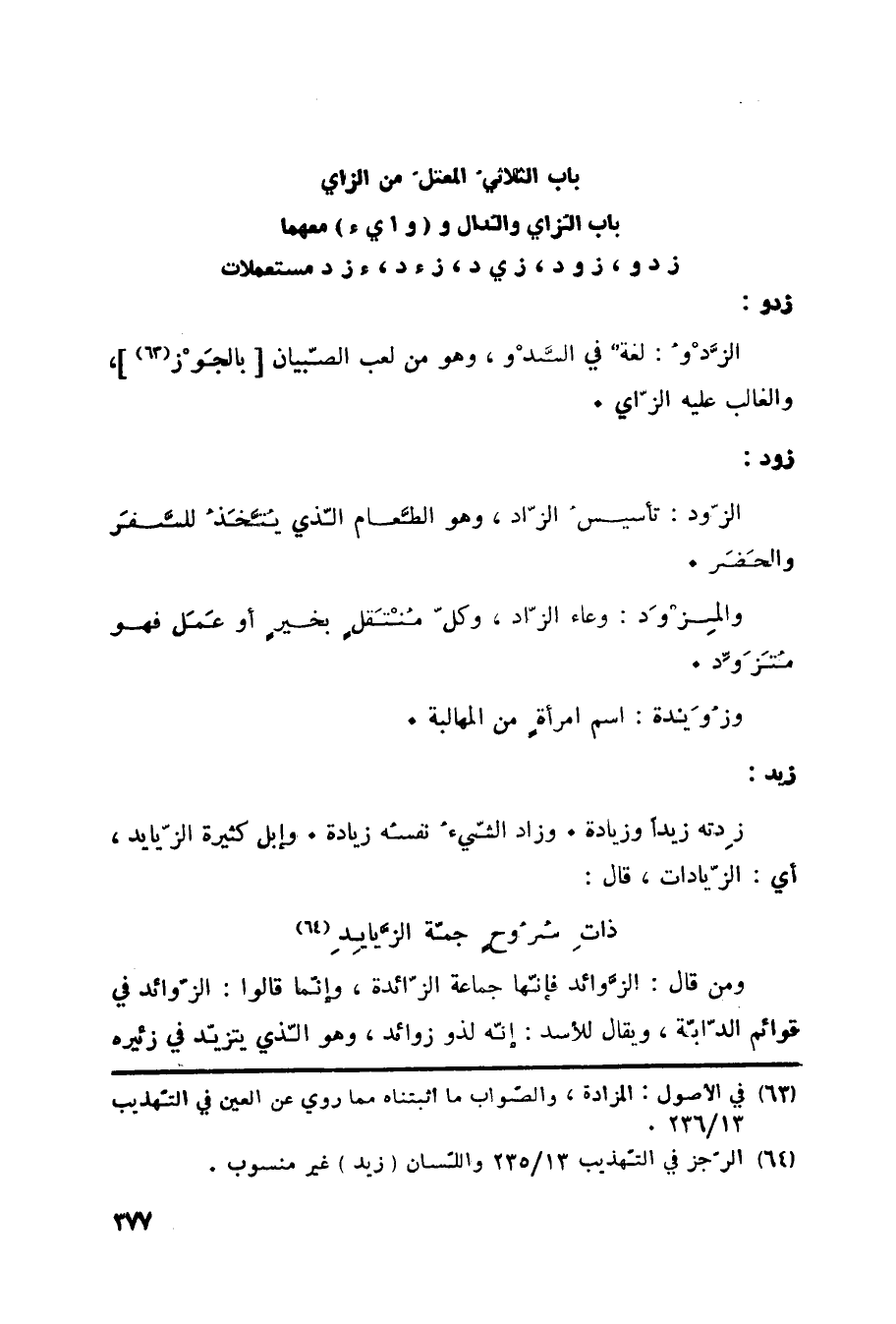 باب الزاي والدال و (وا يء) معهما ز د و، ز ود، ز ي د، زء د، ء ز د مستعملات