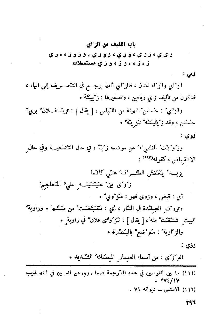 باب اللفيف من الزاي ز ي ي، ز وي، وز ي، ز وز ي، وز وز، ء ز ي، زء ز، ء وز، وز ي مستعملات