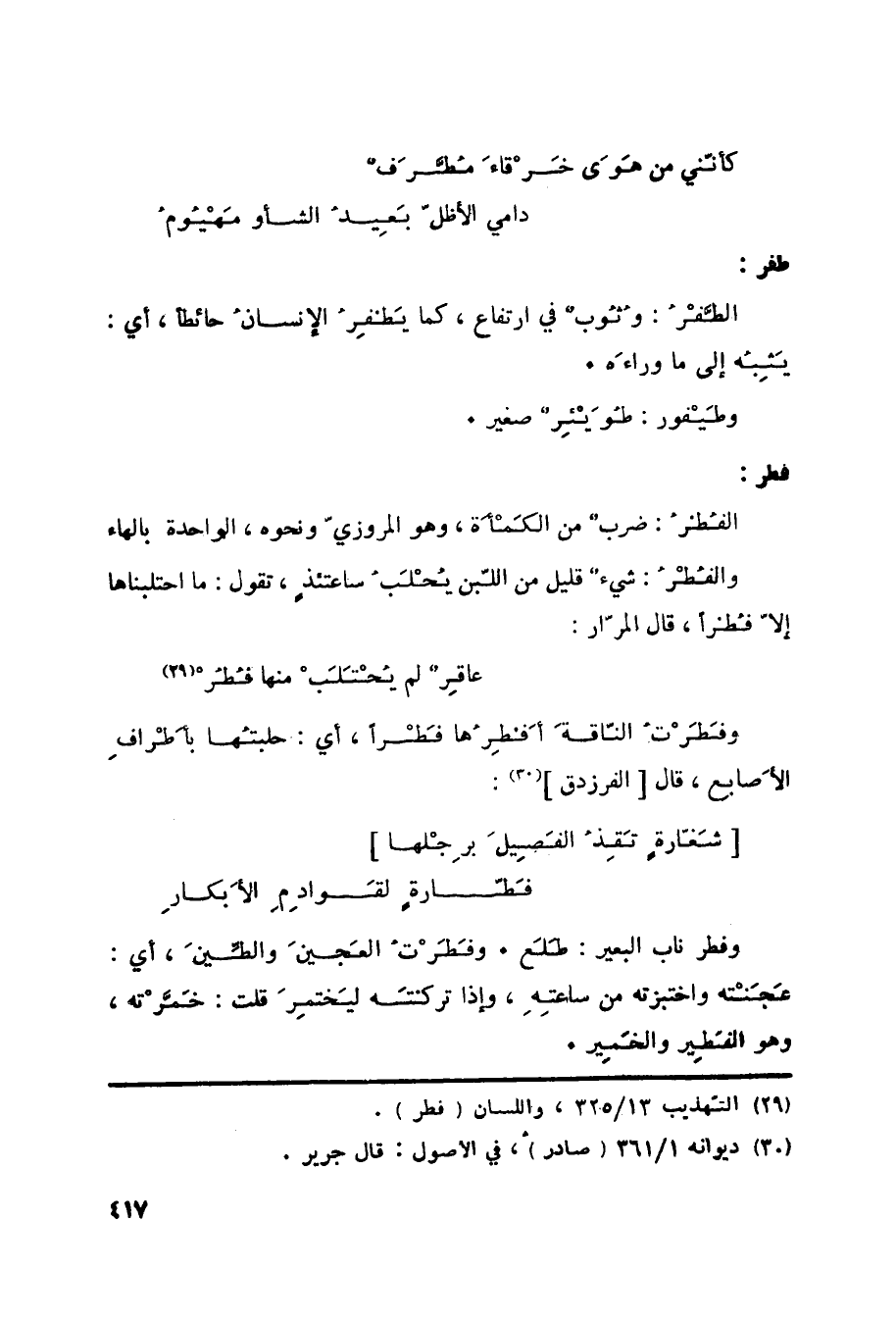 (29) التهذيب 13/ 325، واللسان (فطر) .