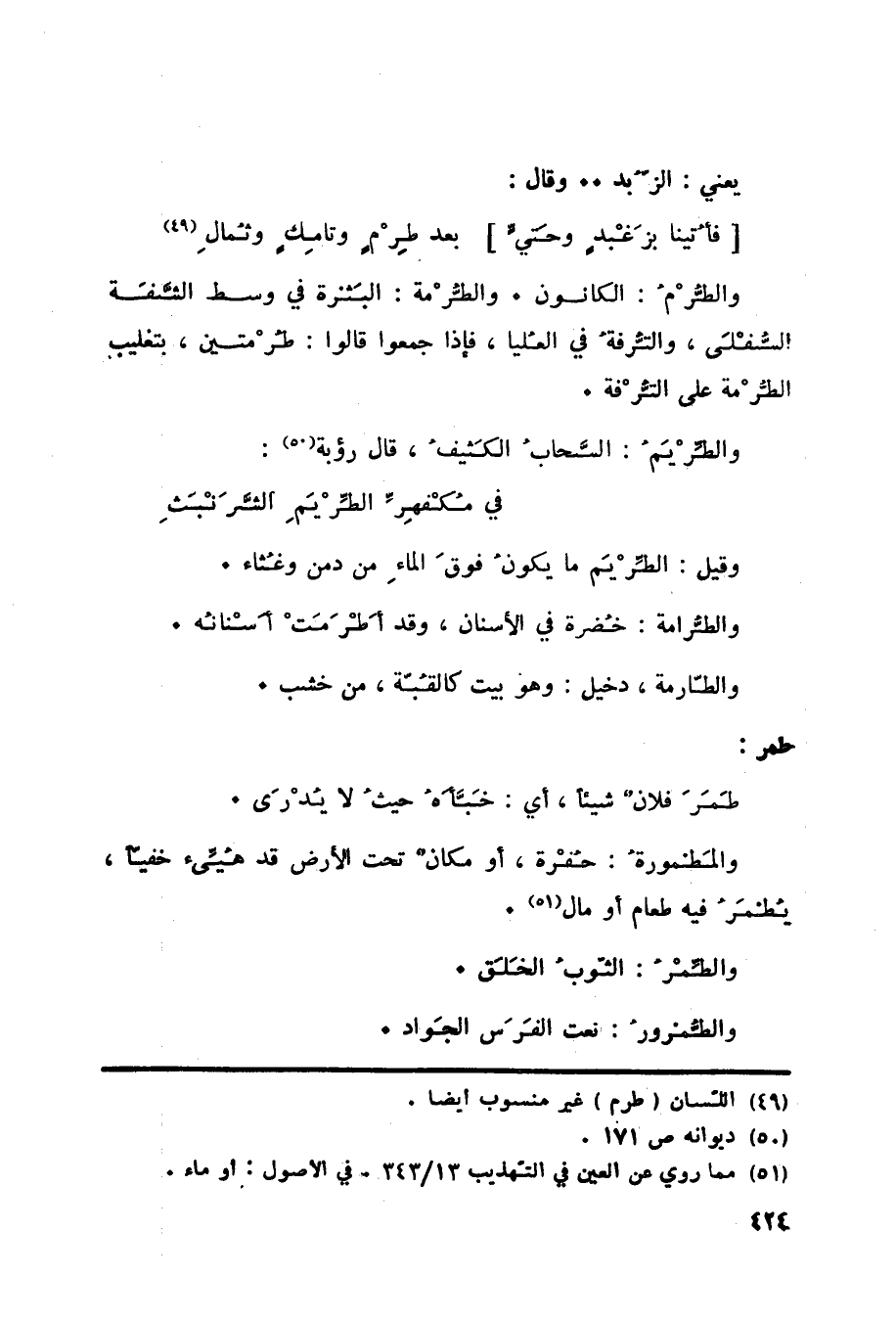 [فأُتينا بزغبد وحَتيٍّ] ... بعد طِرْمٍ وتامِكٍ وثُمالِ «49»