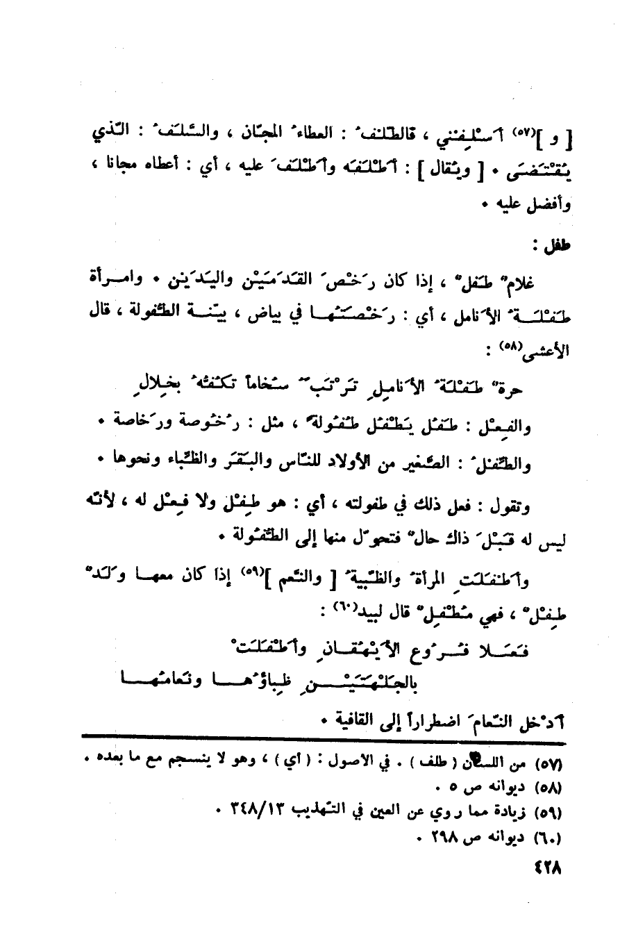 (57) من اللسان (طلف) . في الأصول: (أي) ، وهو لا ينسجم مع ما بعده.