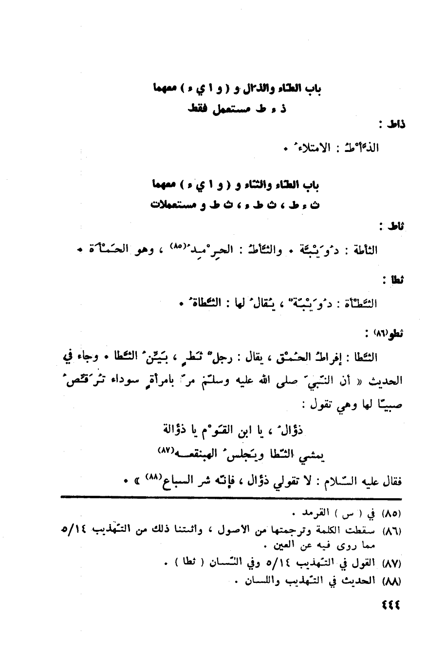 (87) القول في التهذيب 14/ 5 وفي اللسان (ثطا) .