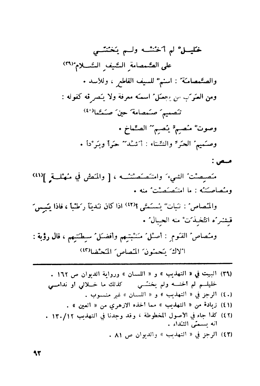 (41) زيادة من التهذيب مما أخذه الأزهري من العين.