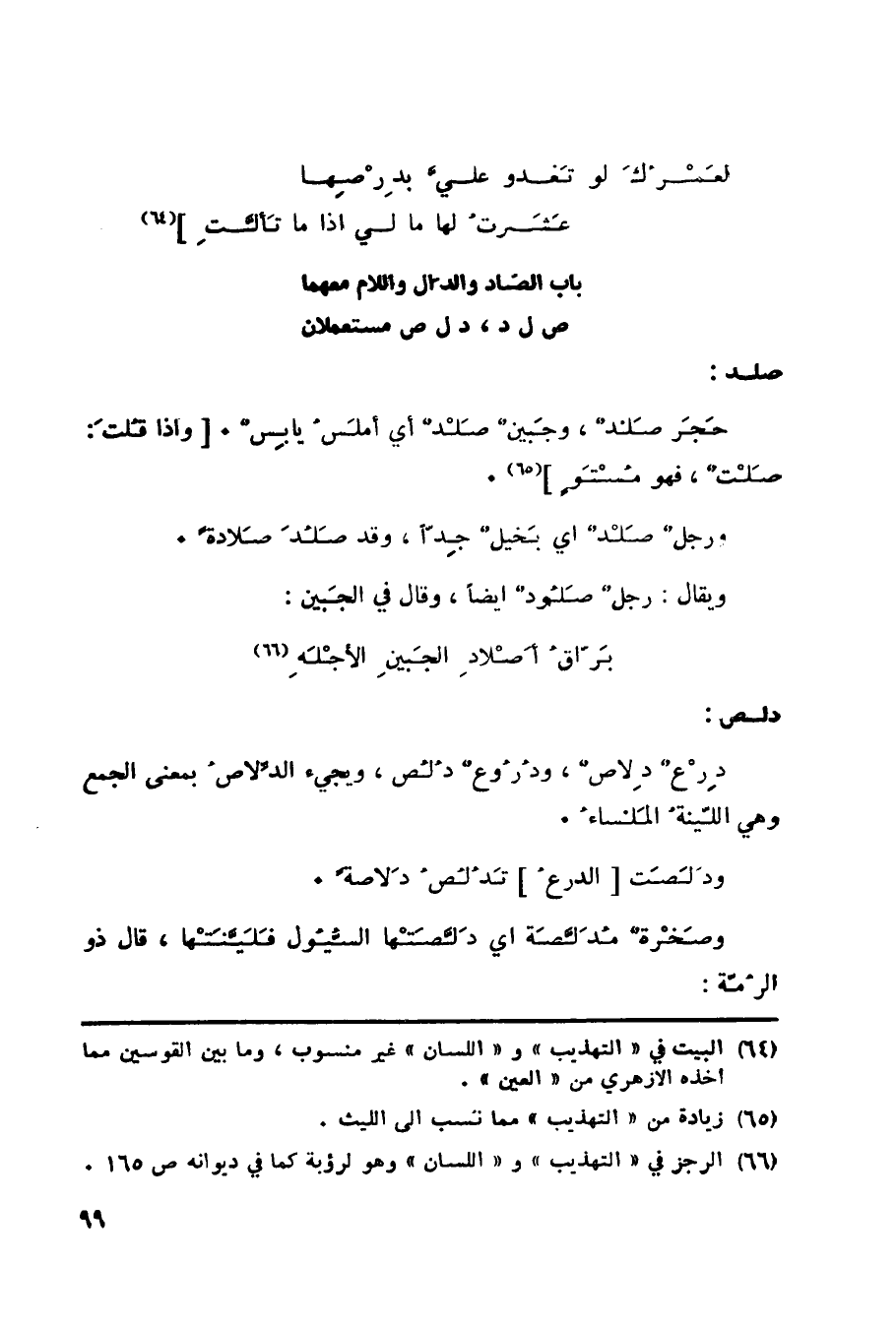 باب الصاد والدال واللام معهما ص ل د، د ل ص مستعملان