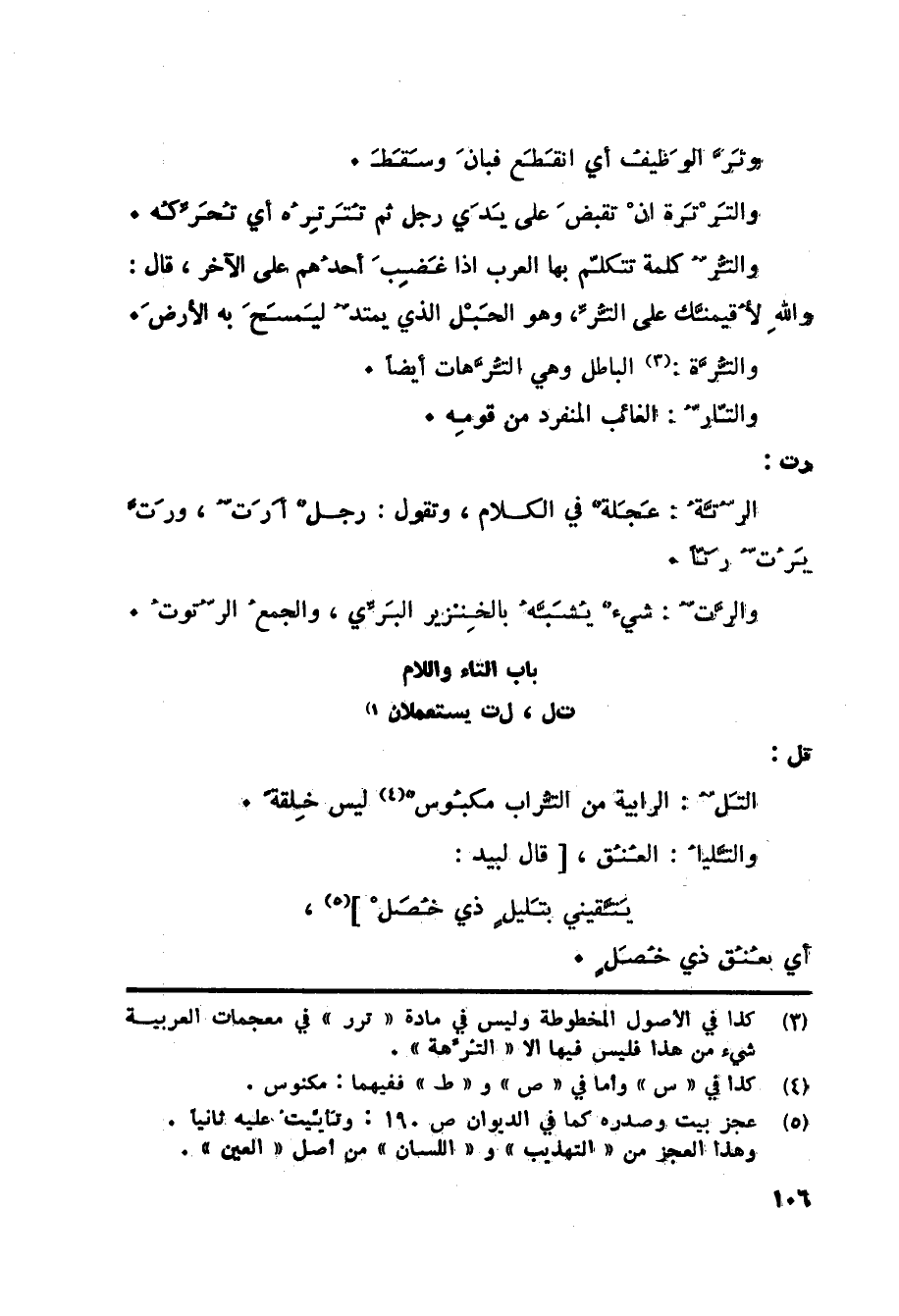 باب التاء واللام ت ل، ل ت يستعملان