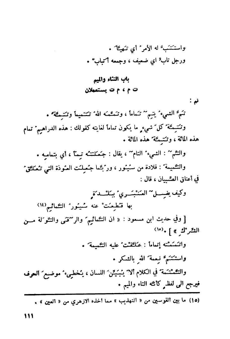 (15) ما بين القوسين من التهذيب مما أخذه الأزهري من العين.