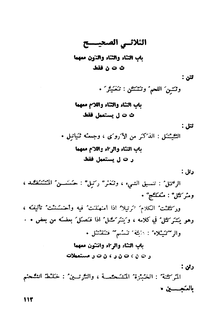 باب التاء والثاء والنون معهما ث ت ن فقط