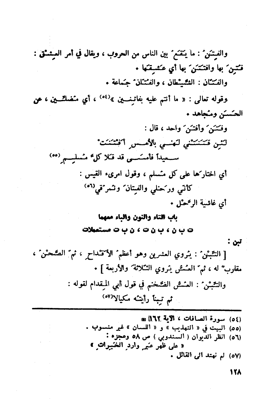 باب التاء والنون والباء معهما ت ب ن، ب ن ت، ن ب ت مستعملات
