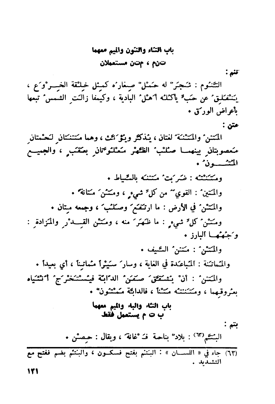 باب التاء والنون والميم معهما ت ن م، م ت ن مستعملان