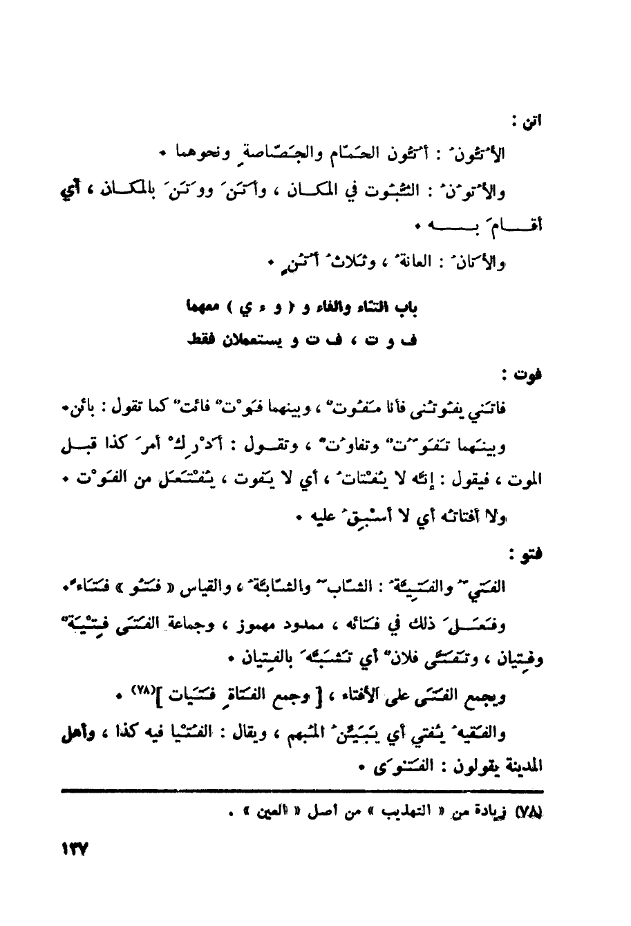 باب التاء والفاء و (وء ي) معهما ف وت، ف ت ويستعملان فقط