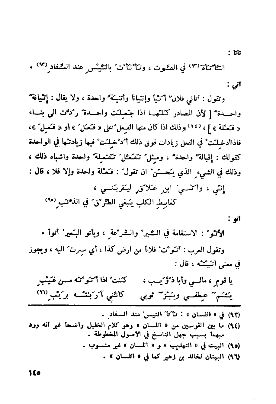(95) ما بين القوسين من اللسان وهو كلام الخليل واضحا غير أنه ورد مبهما بسبب جهل الناسخ في الأصول المخطوطة.