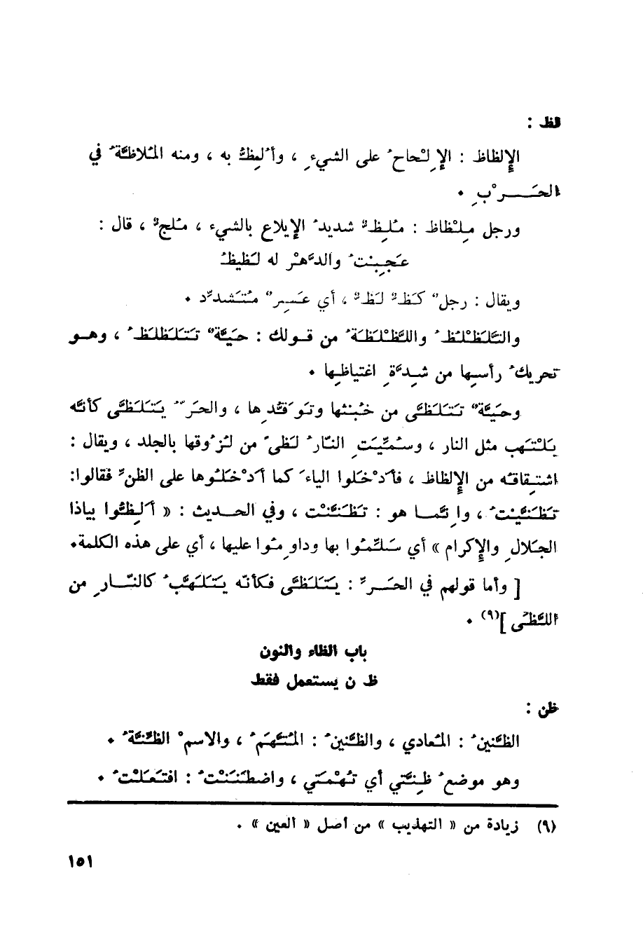 باب الظاء والنون ظ ن يستعمل فقط