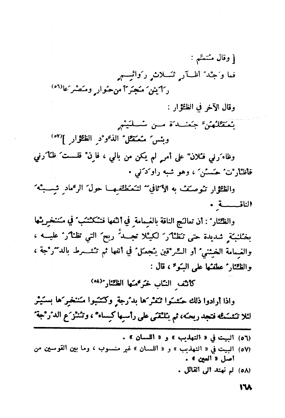 (58) البيت في التهذيب واللسان غير منسوب، وما بين القوسين من أصل العين.