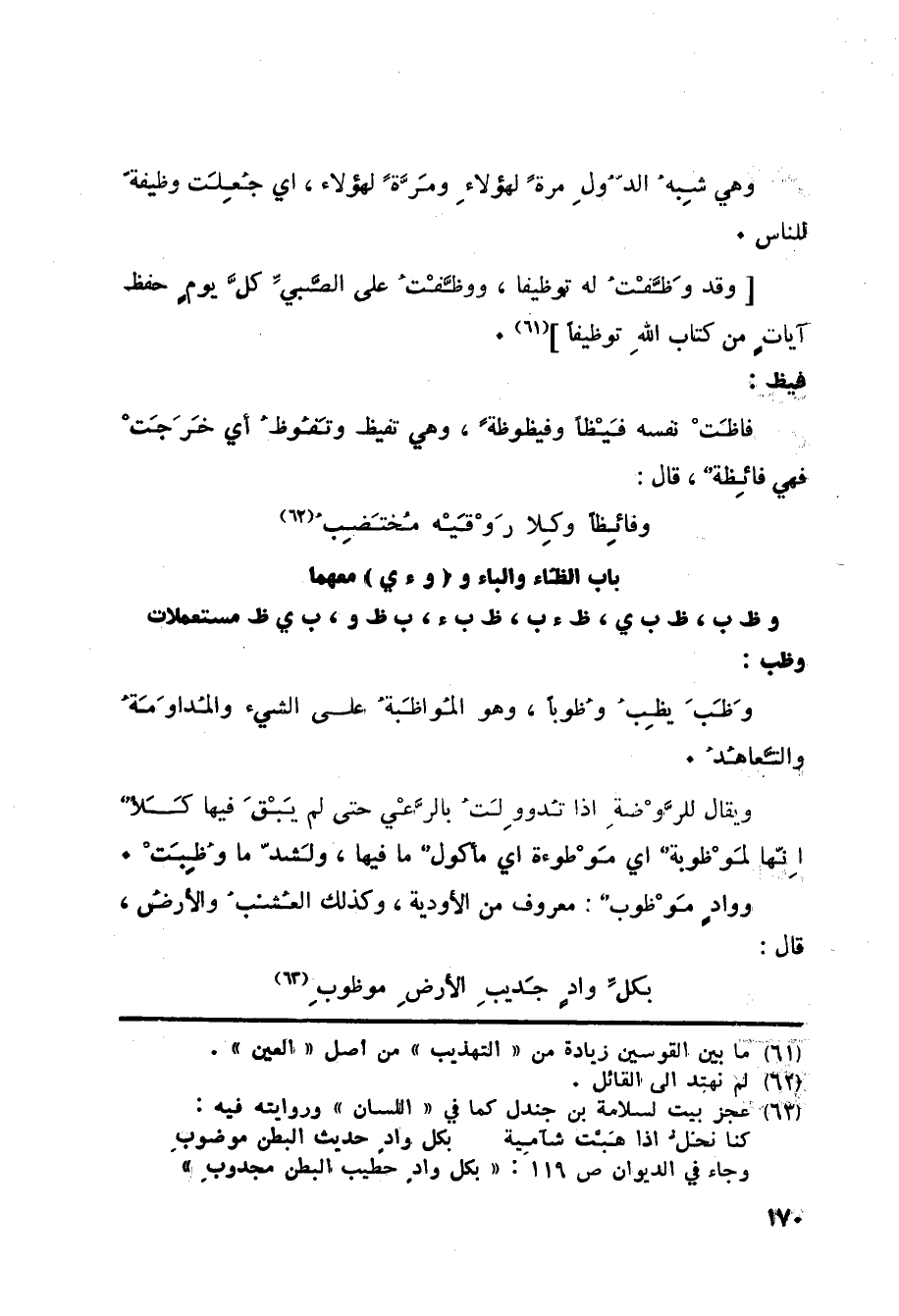 باب الظاء والباء و (وء ي) معهما وظ ب، ظ ب ي، ظء ب، ظ بء، ب ظ و، ب ي ظ مستعملات
