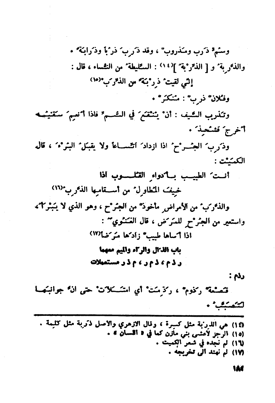 (14) هي الذربة مثل كسرة، وقال الأزهري والأصل ذربة مثل كلمة.