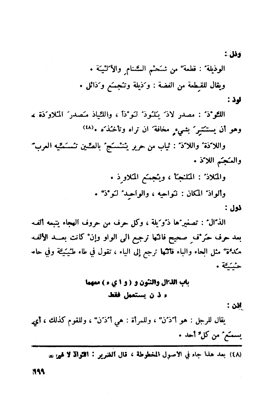 باب الذّال والنّون و (وا يء) معهماء ذ ن يستعمل فقط