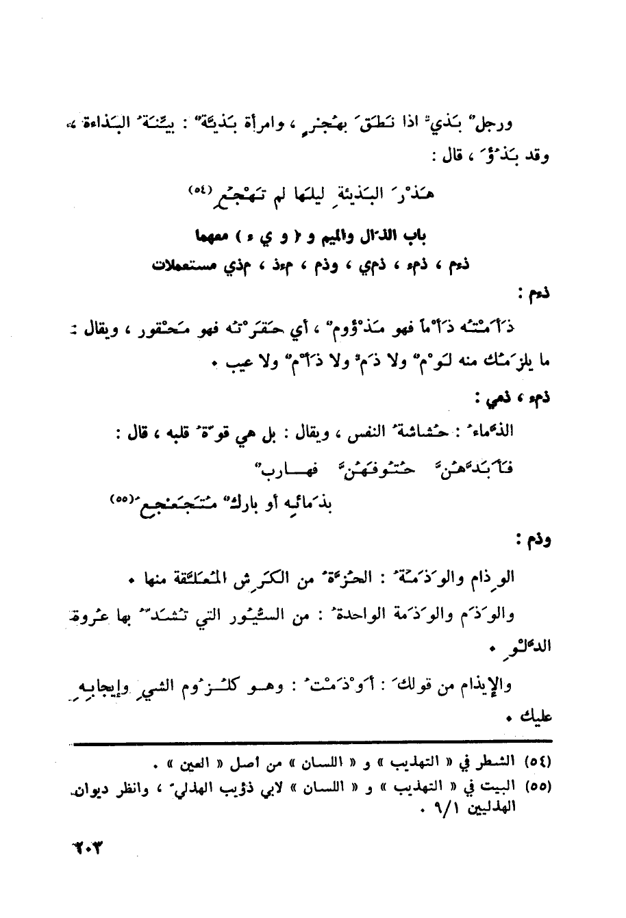(55) البيت في التهذيب واللسان (لأبي ذؤيب الهذلي) ، وانظر ديوان الهذليين 1/ 9.