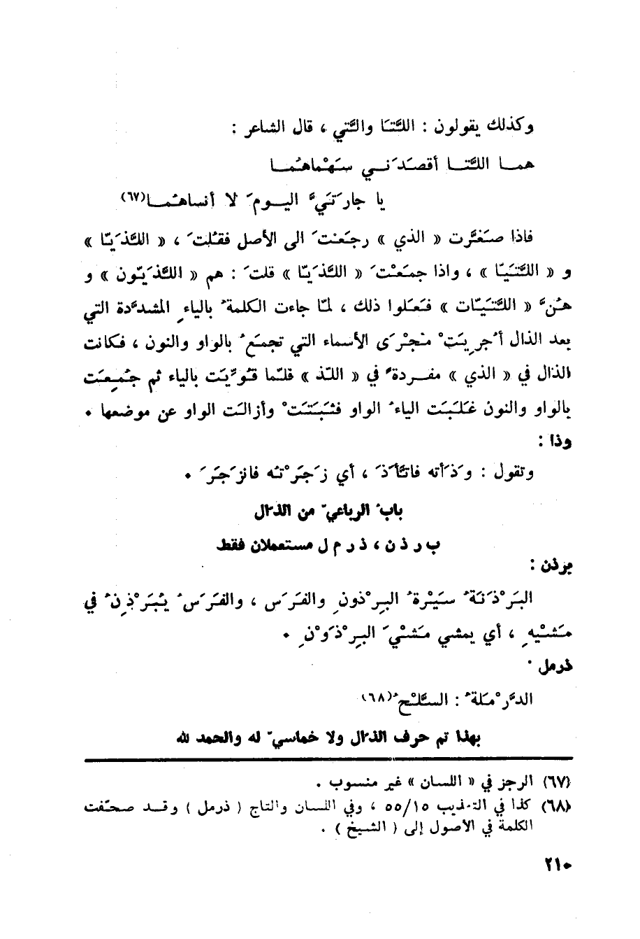 بهذا تم حرف الذال ولا خماسي له والحمد لله