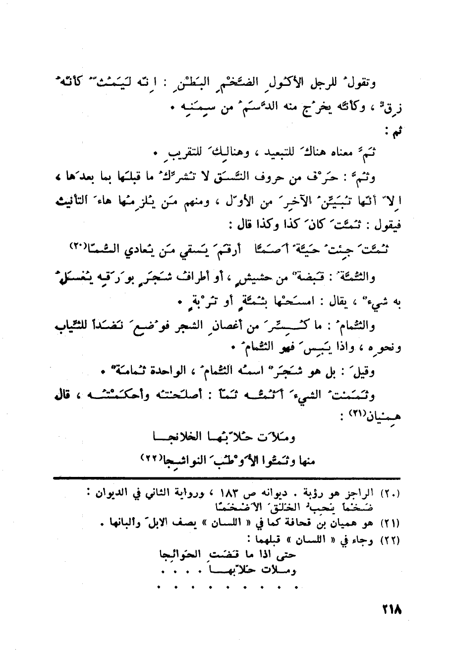 (22) هو (هميان بن قحافة) كما في اللسان يصف الإبل وألبانها.